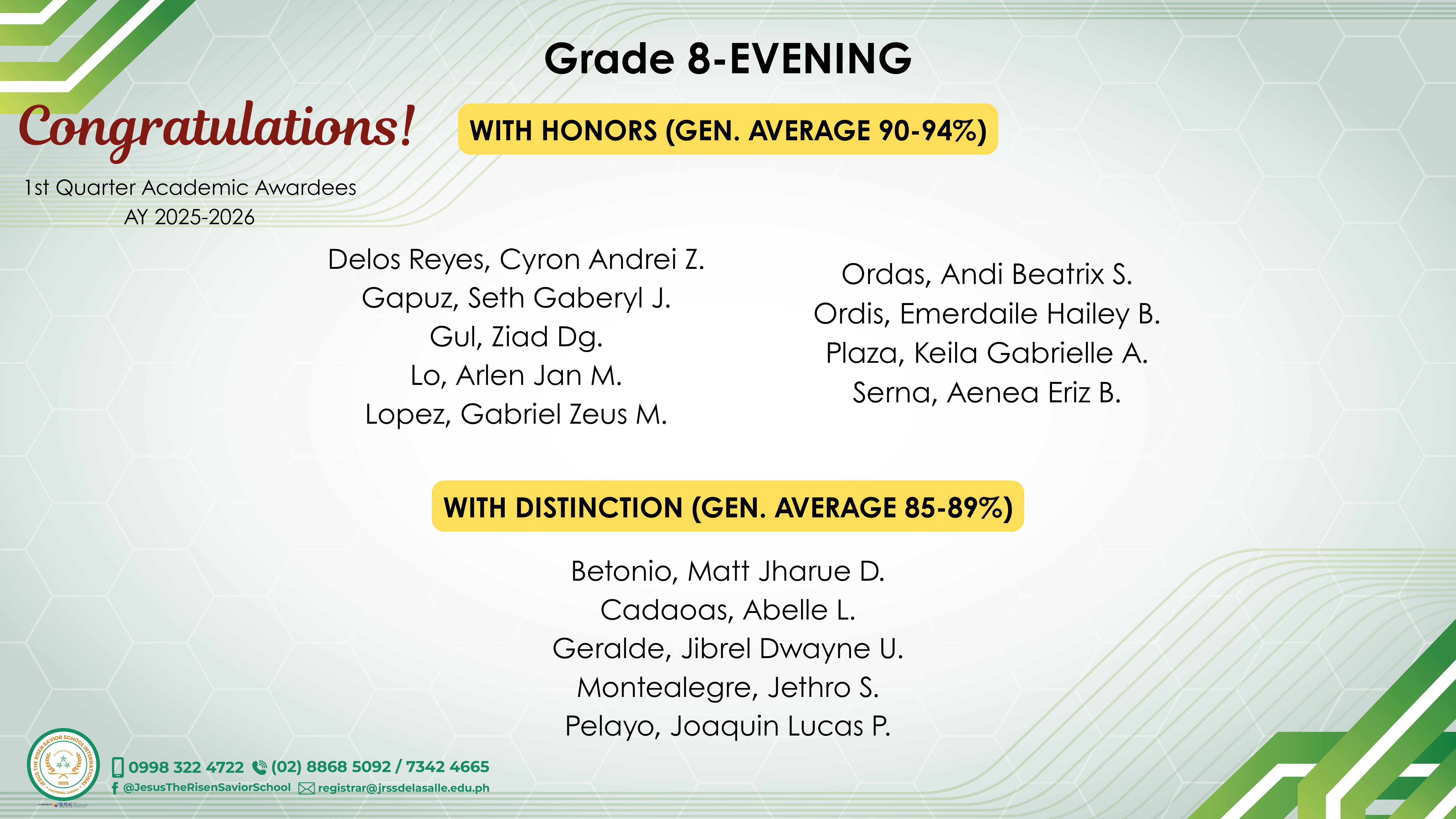 Grade 8 - Evening Class Awardees